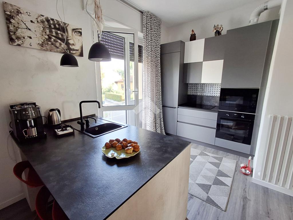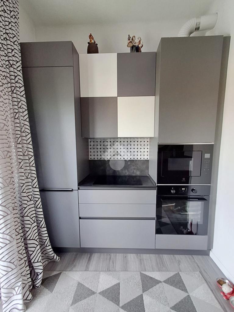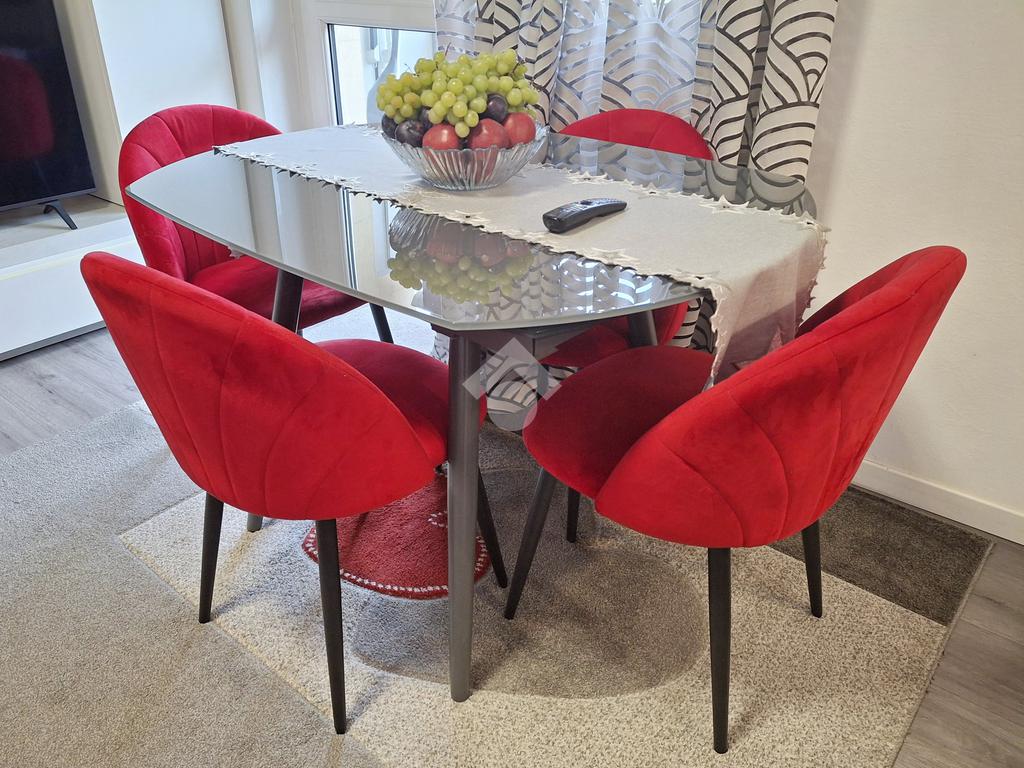 L’appartamento viene consegnato completamente arredato con mobili praticamente nuovi (2022), molti dei quali su misura da artigiani locali, come visibili nelle foto.