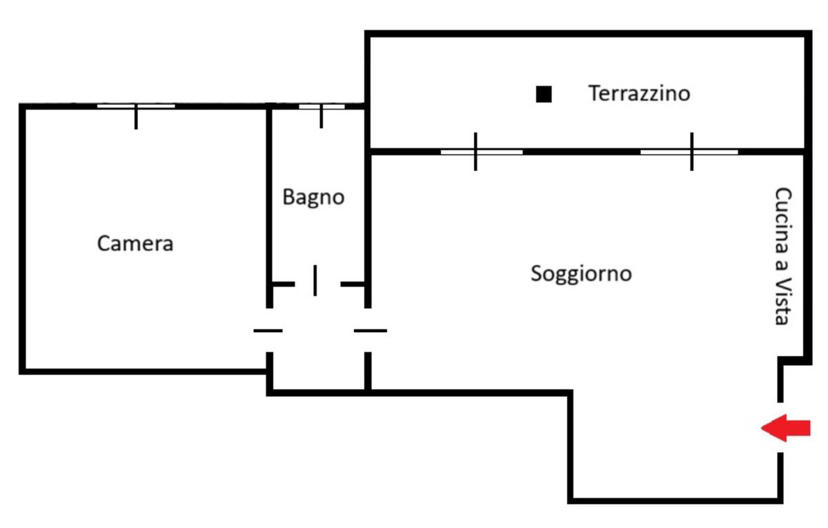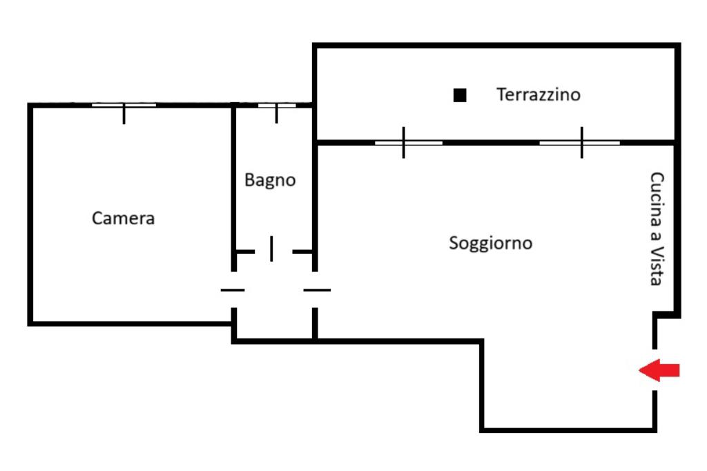 L'appartamento di 66 mq si trova al piano terreno ed è composto da ampia zona living con cucina a vista con doppia porta finestrata con affaccio sul terrazzino di 15 mq esposto ad ovest, bagno finestrato con doccia e camera matrimoniale.