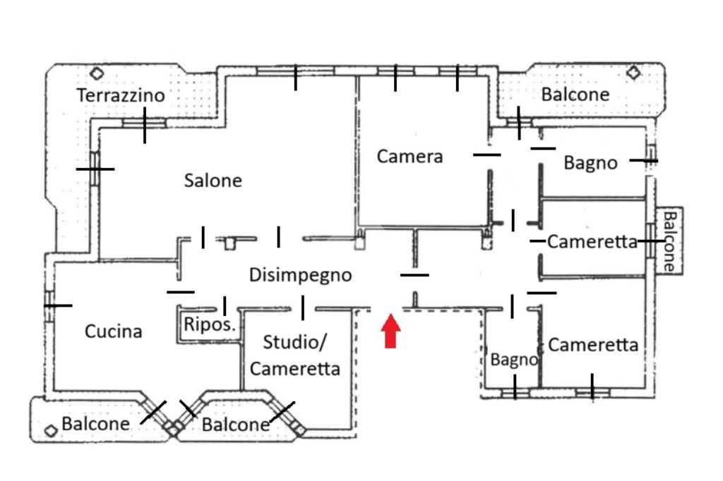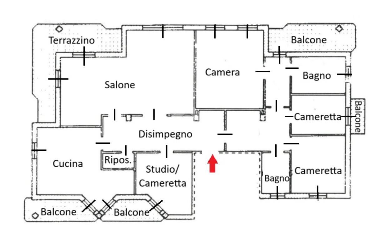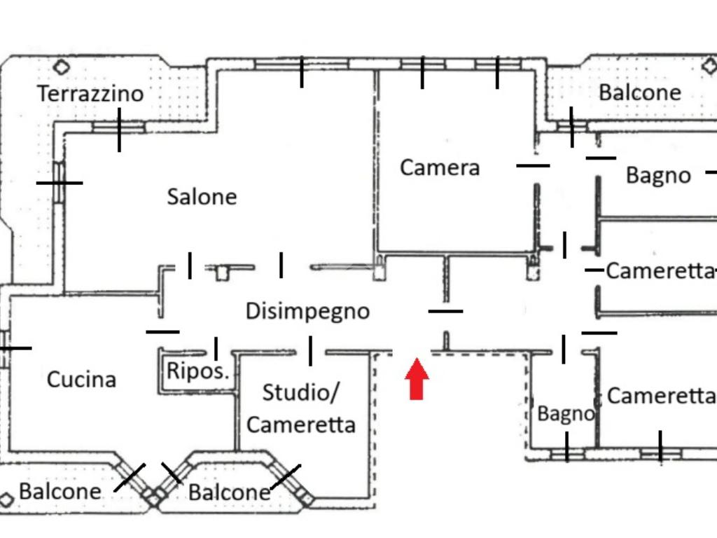 L'appartamento di 203 mq oltre 36 mq di balconi è composto da: salone doppio con camino con doppia porta finestra con affaccio sul terrazzo di 16 mq esposto a sud, cucina abitabile con affaccio sul balcone, ripostiglio, cameretta/studio con affaccio sul balcone, bagno finestrato con vasca, ampia cameretta, cameretta con affaccio sul balcone, zona padronale privata con disimpegno con affaccio sul balcone di circa 10 mq esposto ad ovest, con camera matrimoniale e bagno finestrato con doccia e vasca.