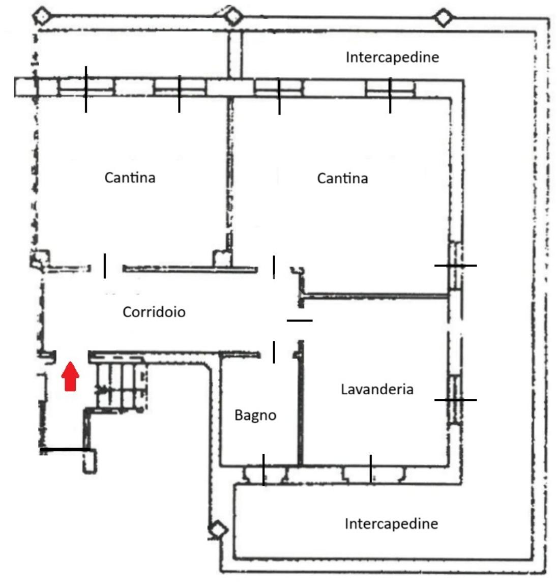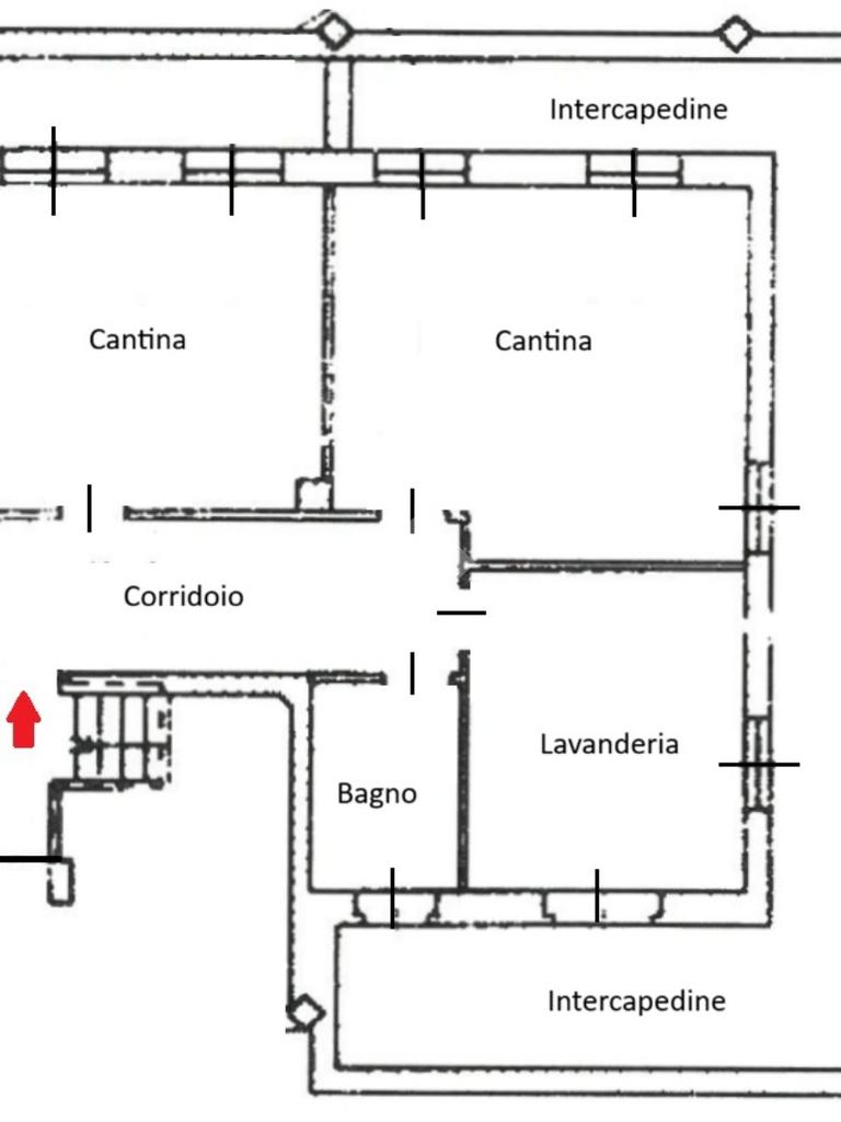 Il Piano Interrato di 80 mq oltre 33 mq di intercapedini pedonabili è composto da: due locali adibiti a cantina/deposito, lavanderia/stireria e bagnetto finestrato con wc e piatto doccia.