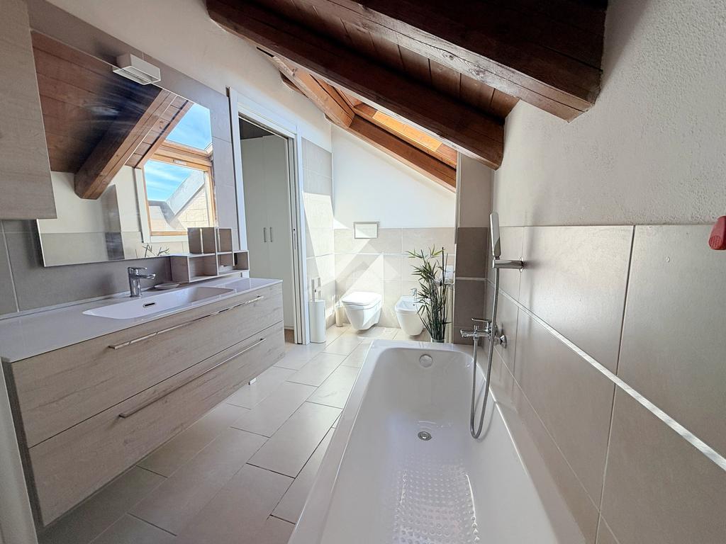 Zona Centro/Clinica Zucchi, nel pieno centro storico di Carate Brianza, comodo con i principali mezzi di trasporto, parchi pubblici attrezzati, negozi e scuole, proponiamo all’interno di un affascinante contesto d’epoca risalente al 1850, completamente ristrutturato nel 2010, un elegante appartamento situato al terzo ed ultimo piano, servito da ascensore, caratterizzato da un suggestivo tetto con travi a vista che dona calore e personalità agli ambienti.