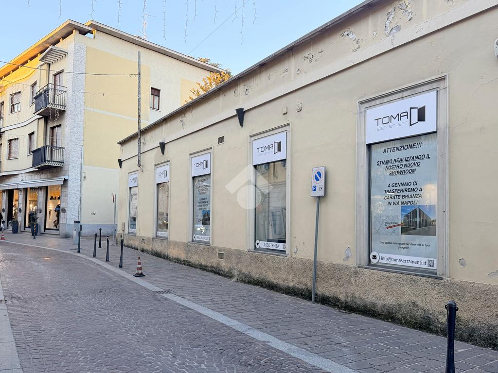 Centro Storico, adiacenze piazza della Chiesa, nel pieno centro cittadino di Carate Brianza, in contesto di villa d'epoca risalente alla metà del '700, proponiamo negozio al piano terra, edificato a metà del 1900.