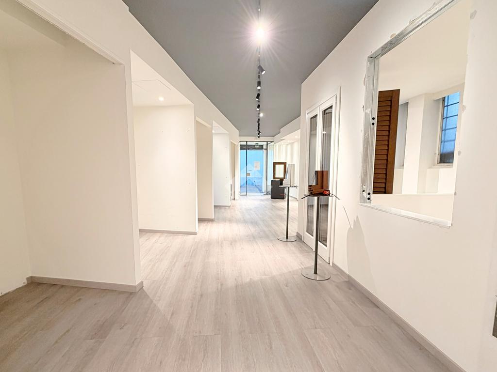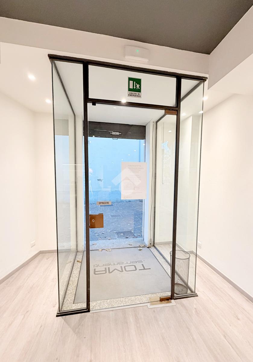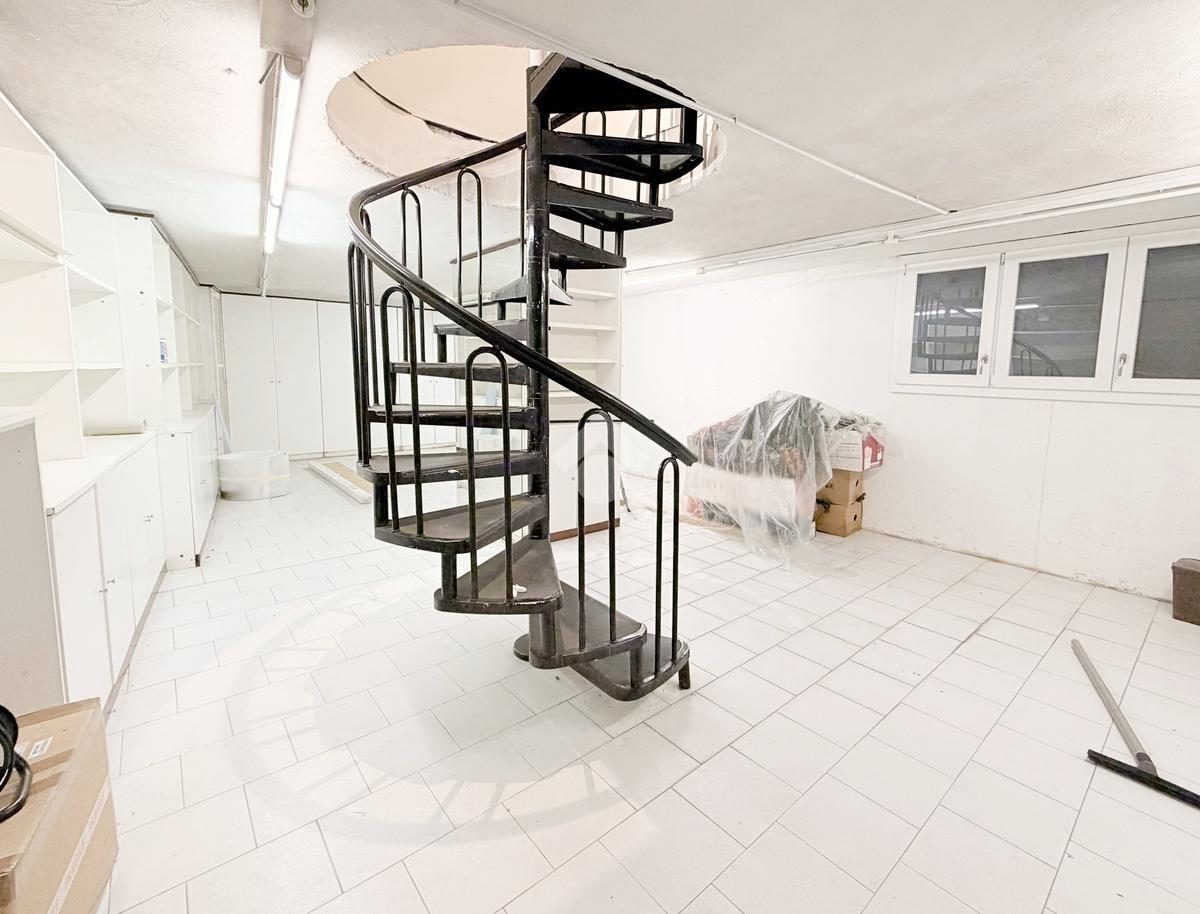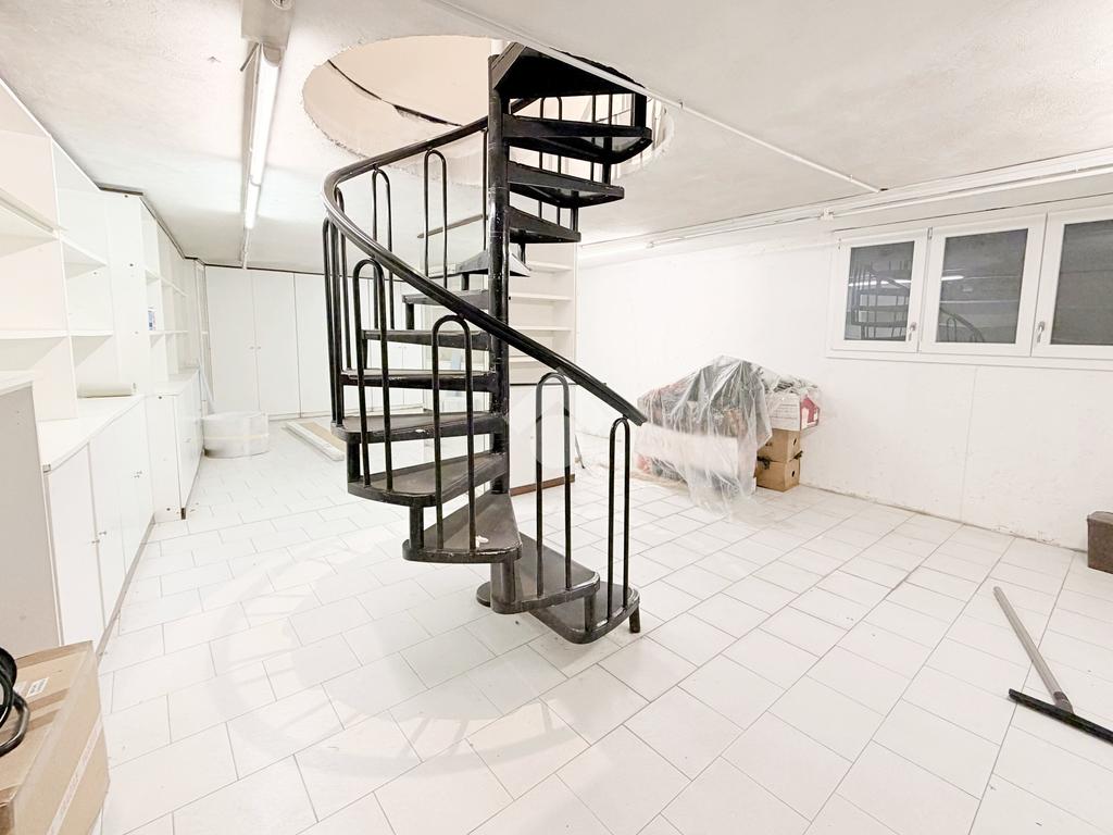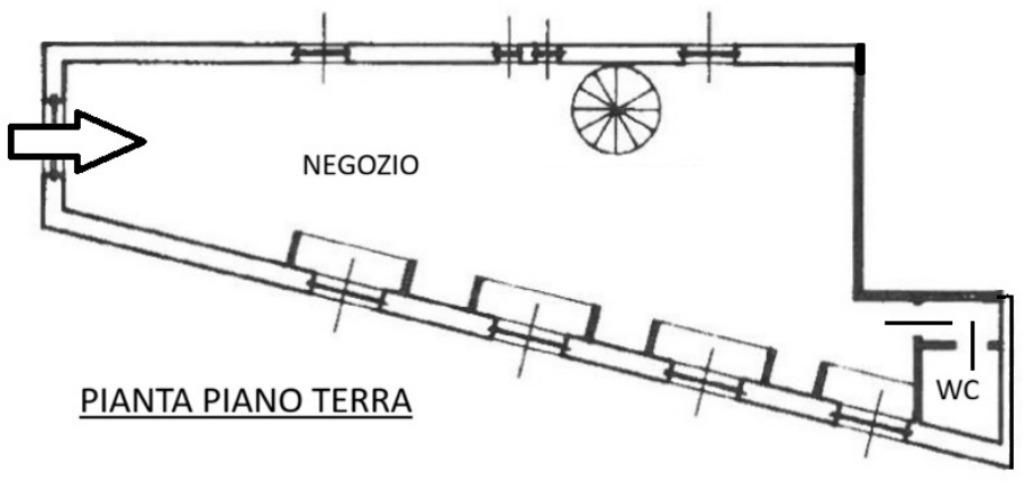 Il negozio di circa 102 mq. è composto da un unico locale open space con cinque vetrine fronte strada, oltre una zona separabile uso ufficio, anti-bagno e bagno cieco. Al piano interrato, collegato da una scala a chiocciola interna, troviamo un magazzino di quasi 60 mq.