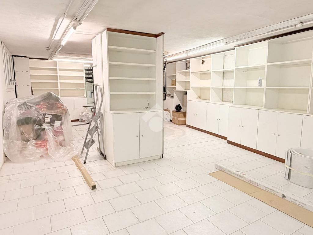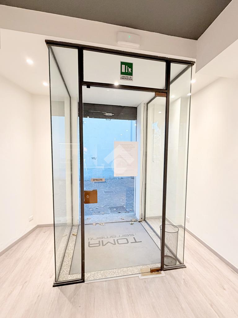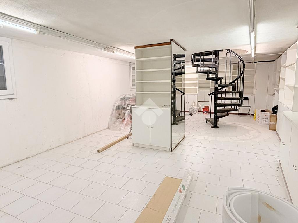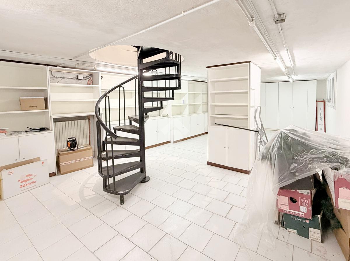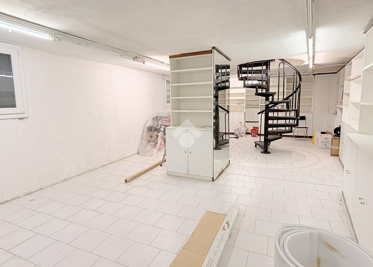 Il negozio di circa 102 mq. è composto da un unico locale open space con cinque vetrine fronte strada, oltre una zona separabile uso ufficio, anti-bagno e bagno cieco. Al piano interrato, collegato da una scala a chiocciola interna, troviamo un magazzino di quasi 60 mq.