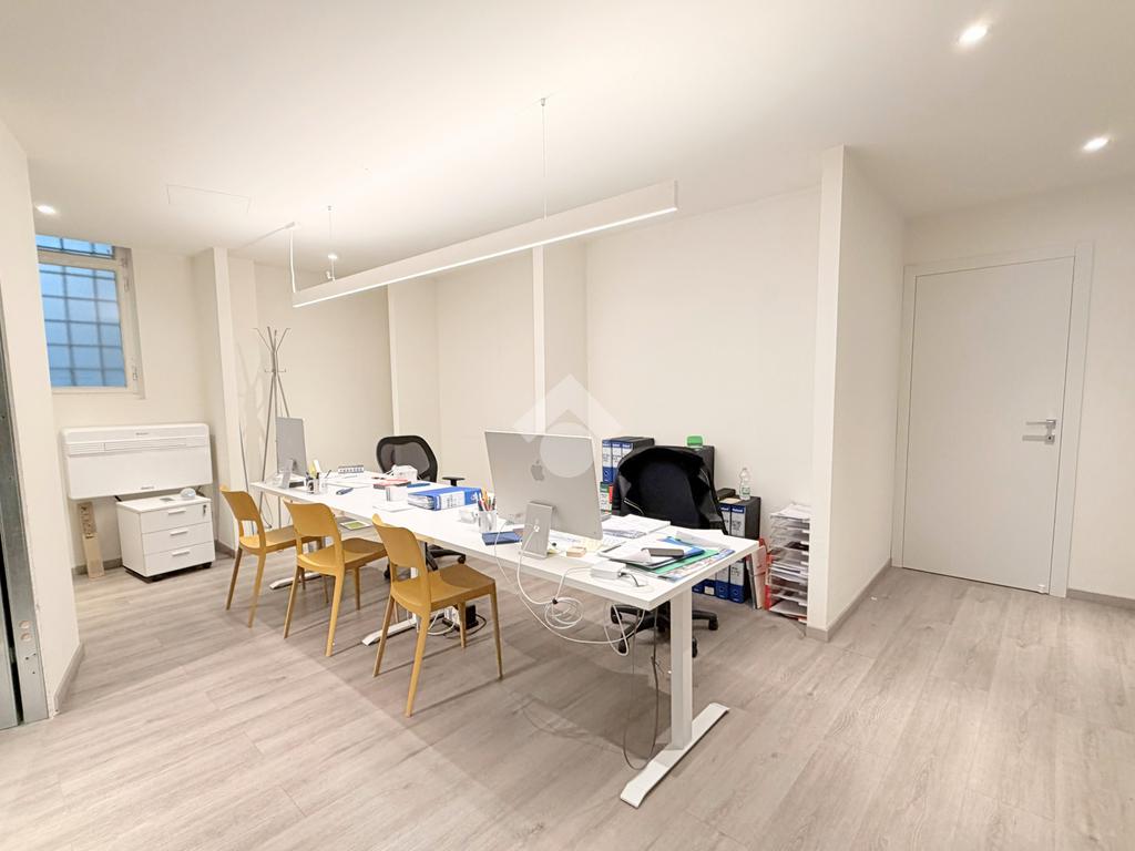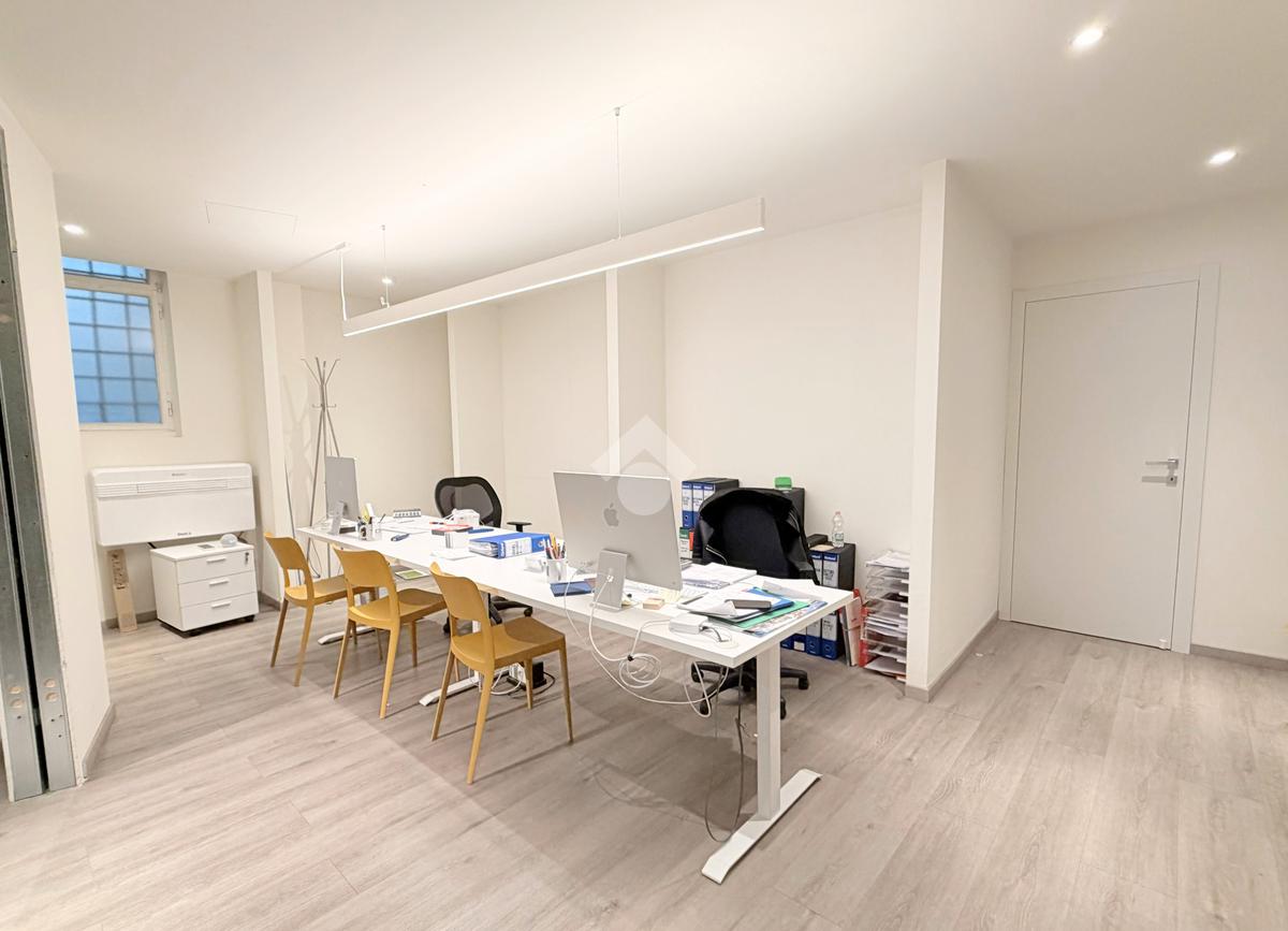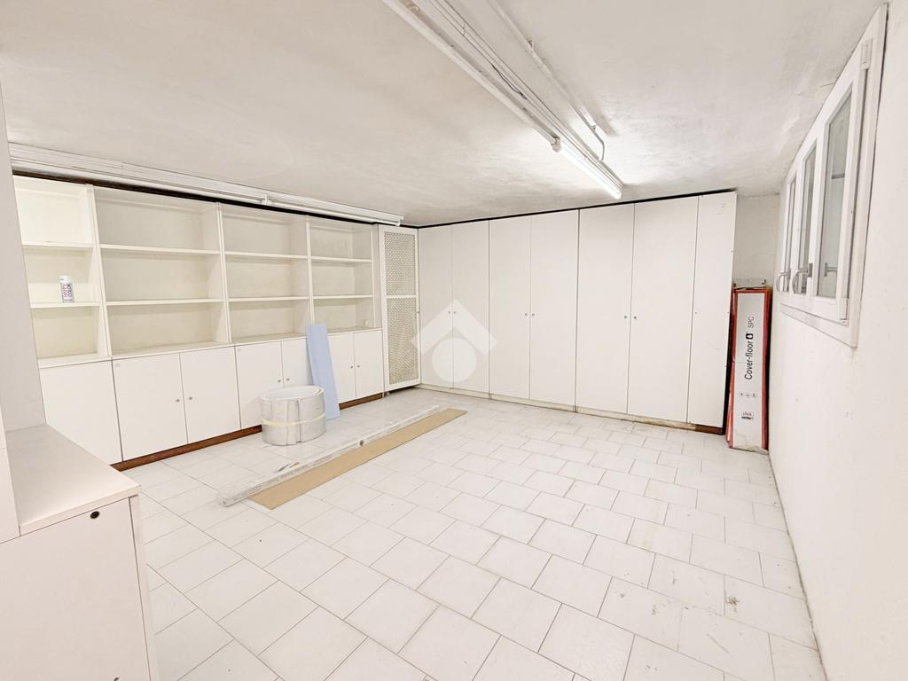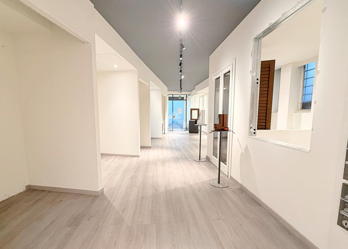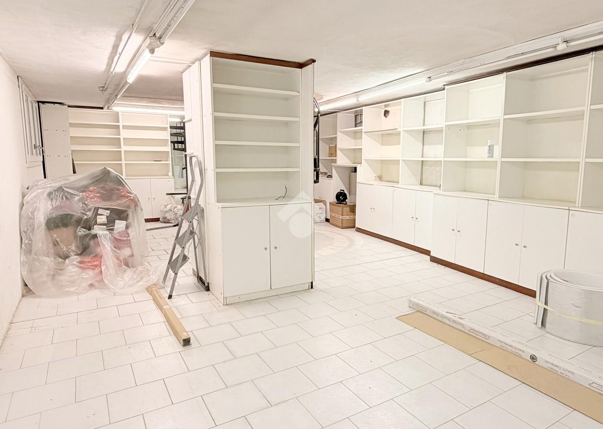Il negozio di circa 102 mq. è composto da un unico locale open space con cinque vetrine fronte strada, oltre una zona separabile uso ufficio, anti-bagno e bagno cieco. Al piano interrato, collegato da una scala a chiocciola interna, troviamo un magazzino di quasi 60 mq.