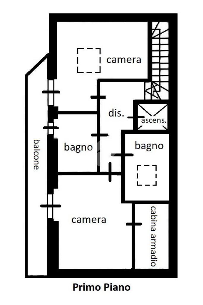 Ampio soggiorno, cucina abitabile, due camere matrimoniali, doppi servizi e balcone.