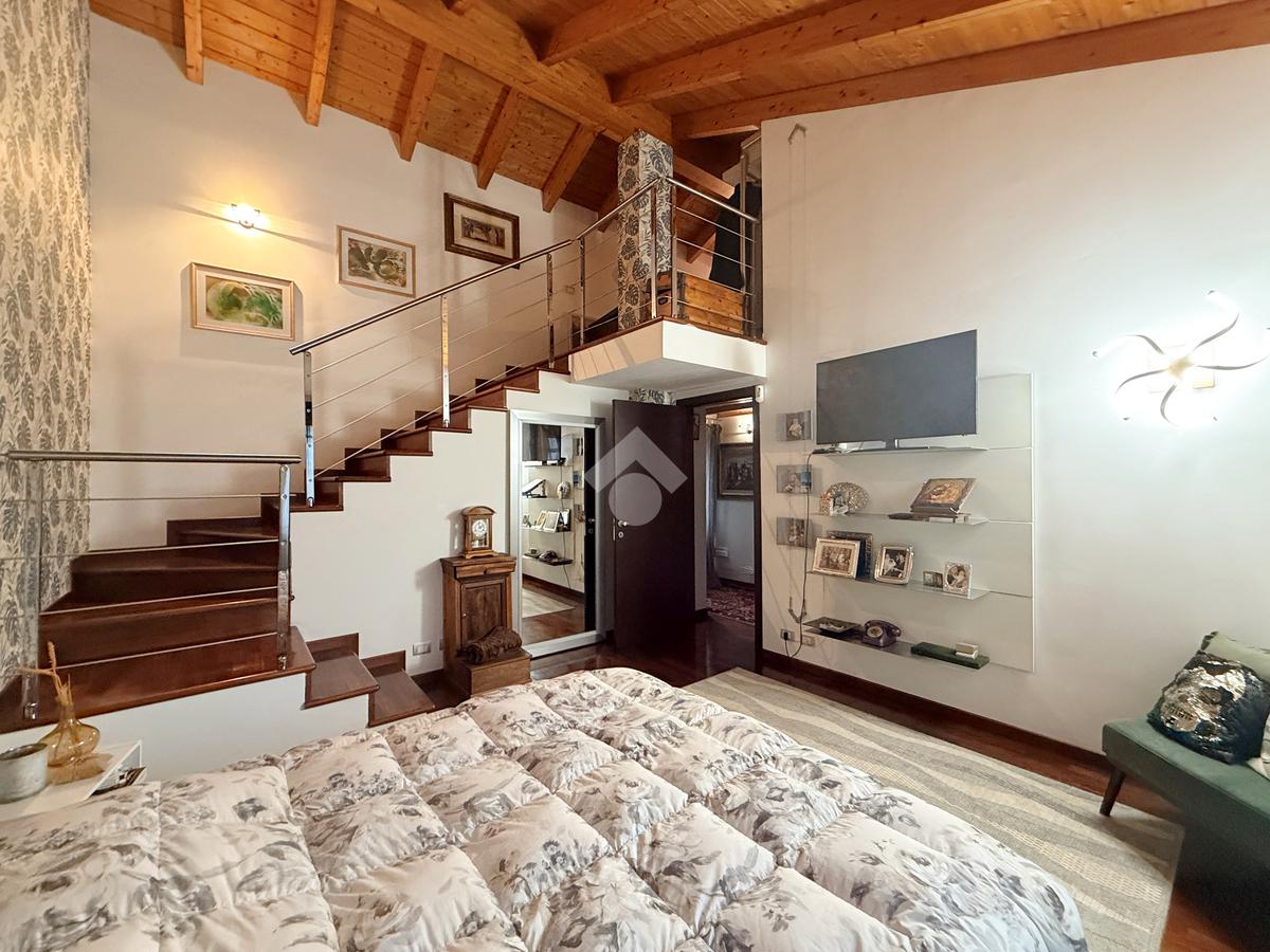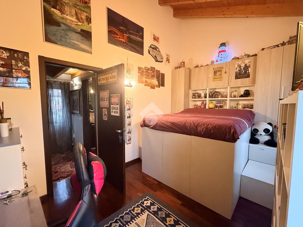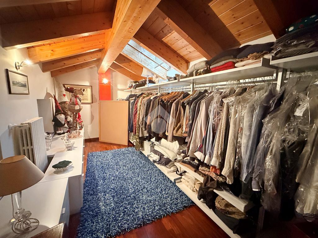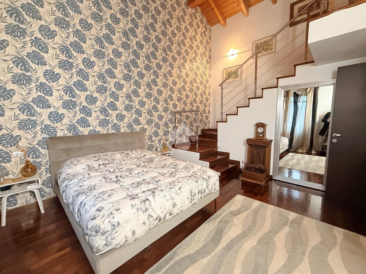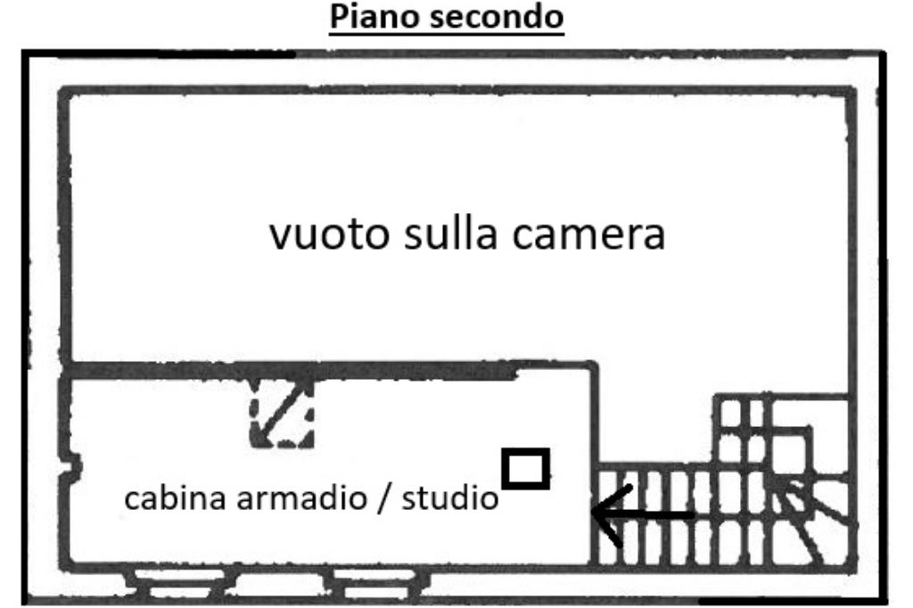 Zona notte (primo piano, ca. 60 mq): disimpegno, una camera singola, bagno finestrato con vasca/doccia e una spaziosa camera matrimoniale che conduce a un sovrastante locale mansardato di circa 14 mq utilizzabile come cabina armadio o studio