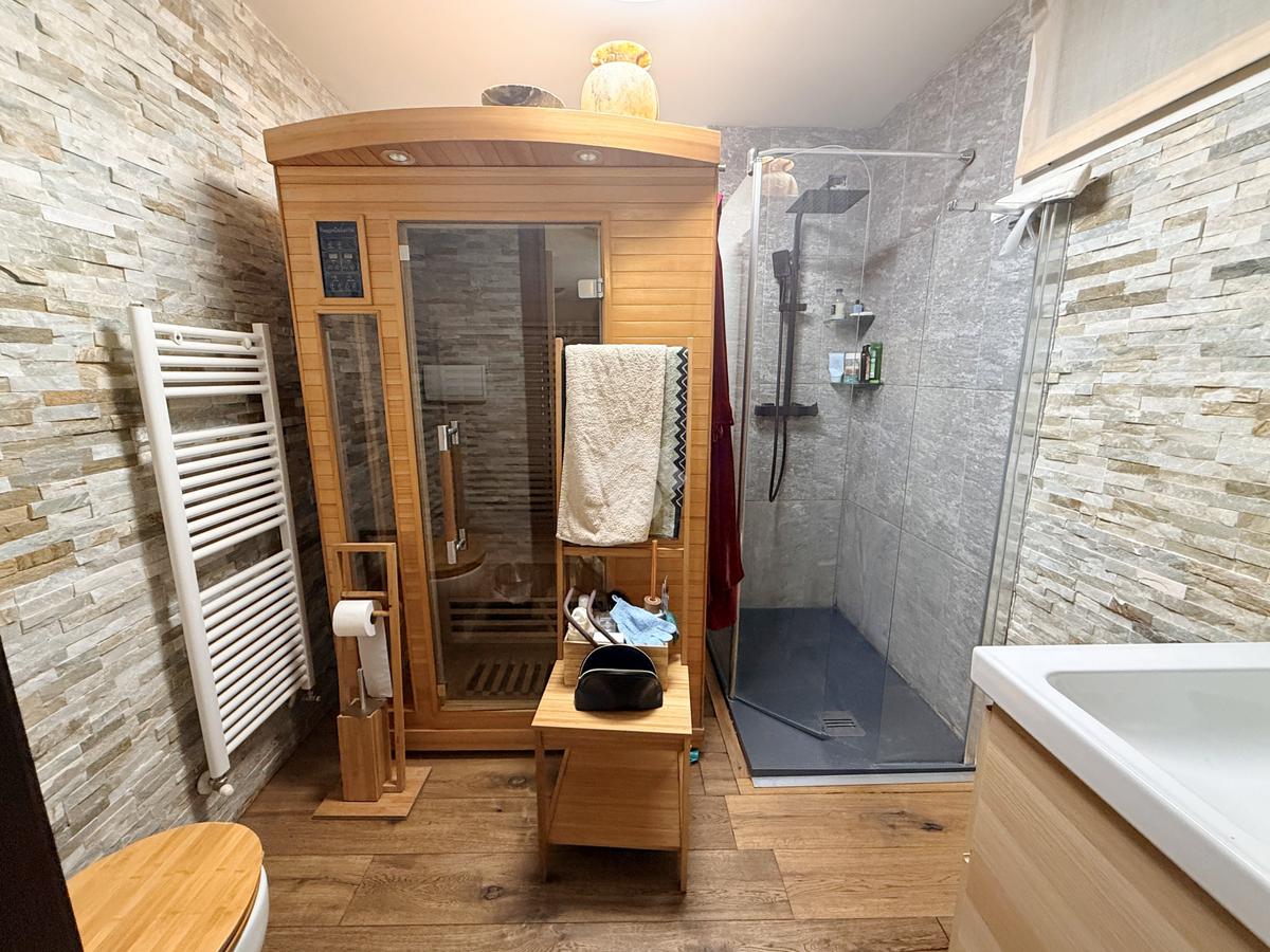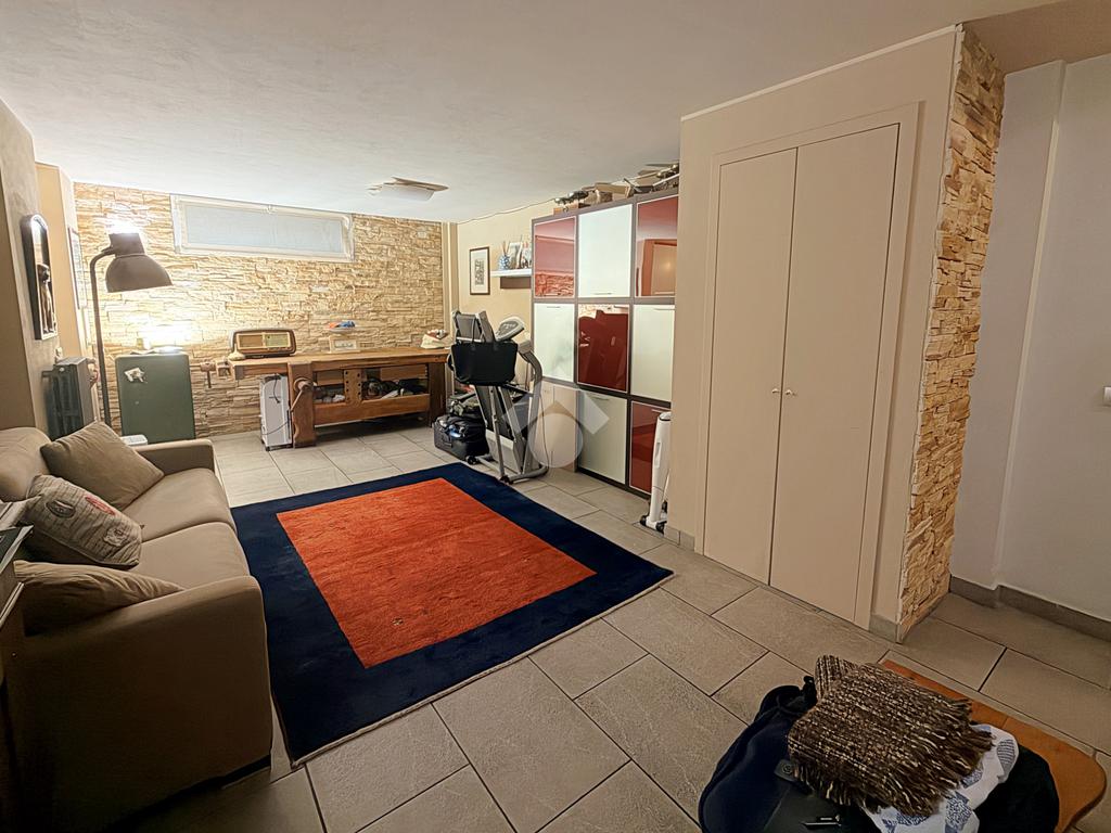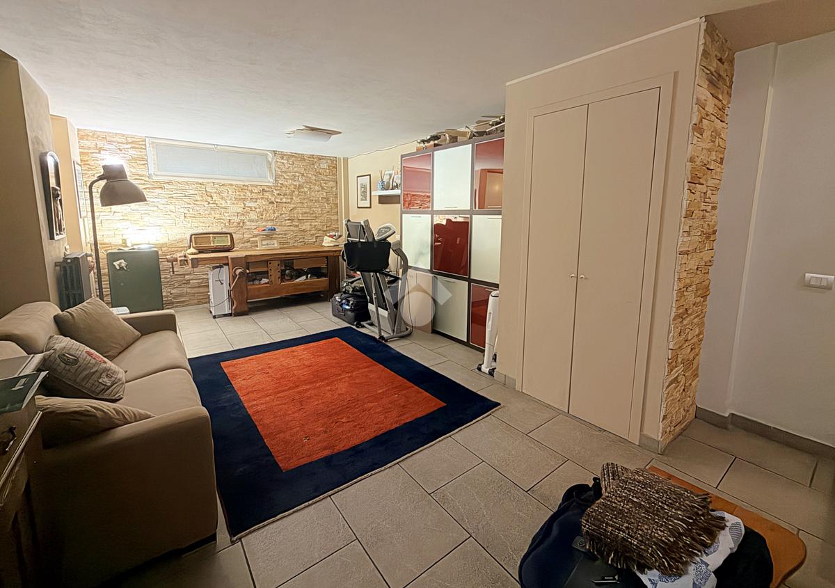 Piano seminterrato (ca. 81 mq): ampia taverna, bagno con doccia e sauna e box doppio in larghezza con serranda motorizzata e lavanderia.