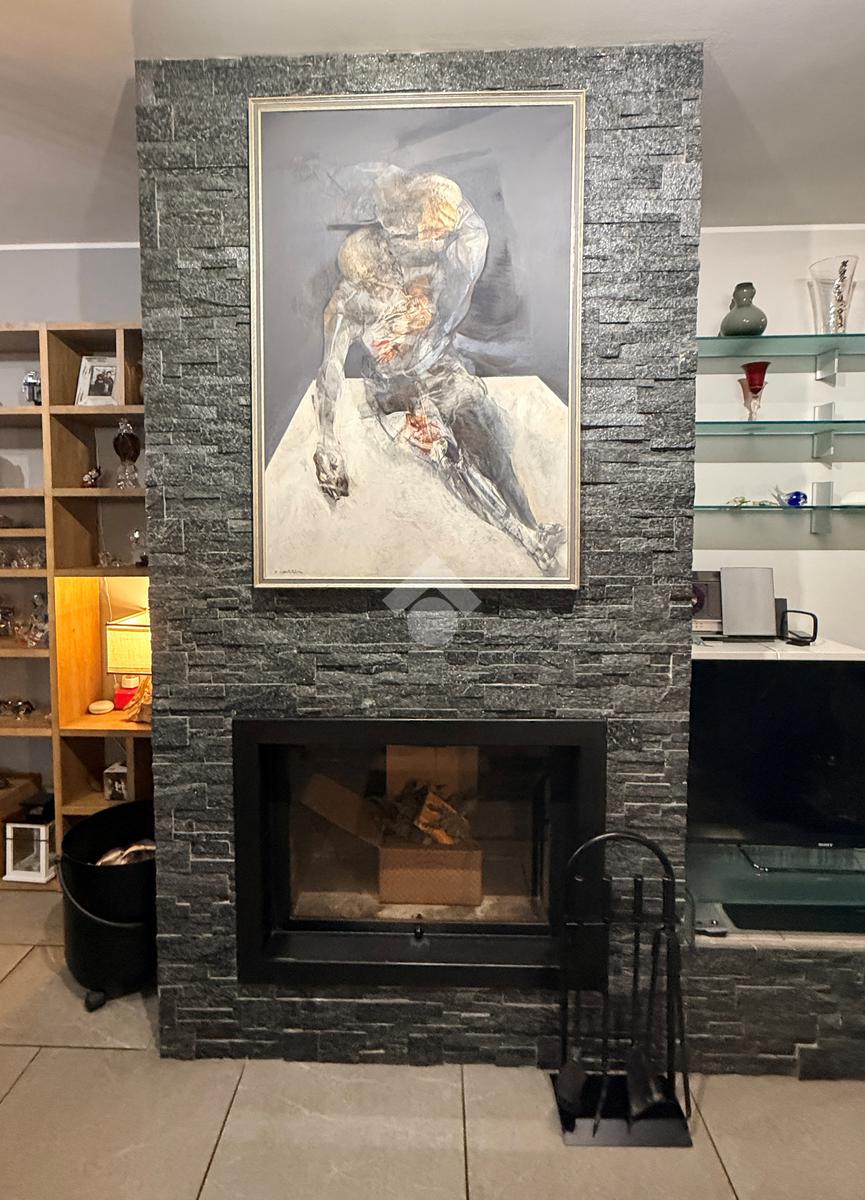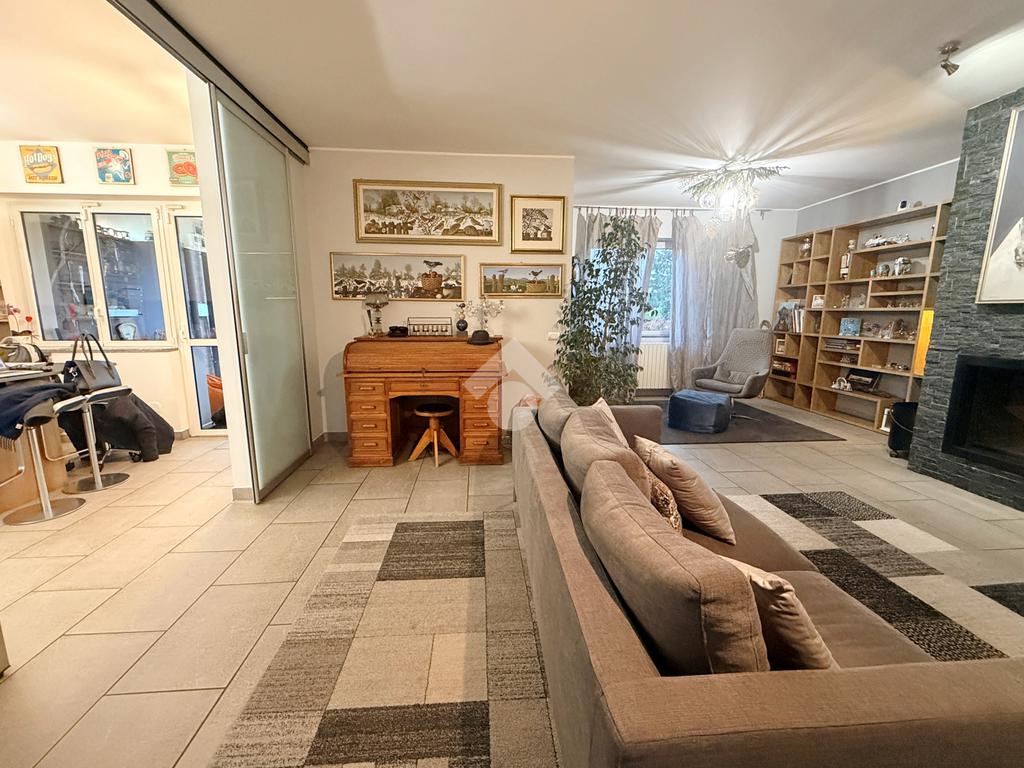 Zona giorno (piano terra, ca. 68 mq): ingresso da un patio privato, ampio soggiorno con camino e zona pranzo, cucina abitabile dalla quale si accede al portico coperto verandato e al giardino privato di circa 120 mq, e completo di impianto di irrigazione e illuminazione.