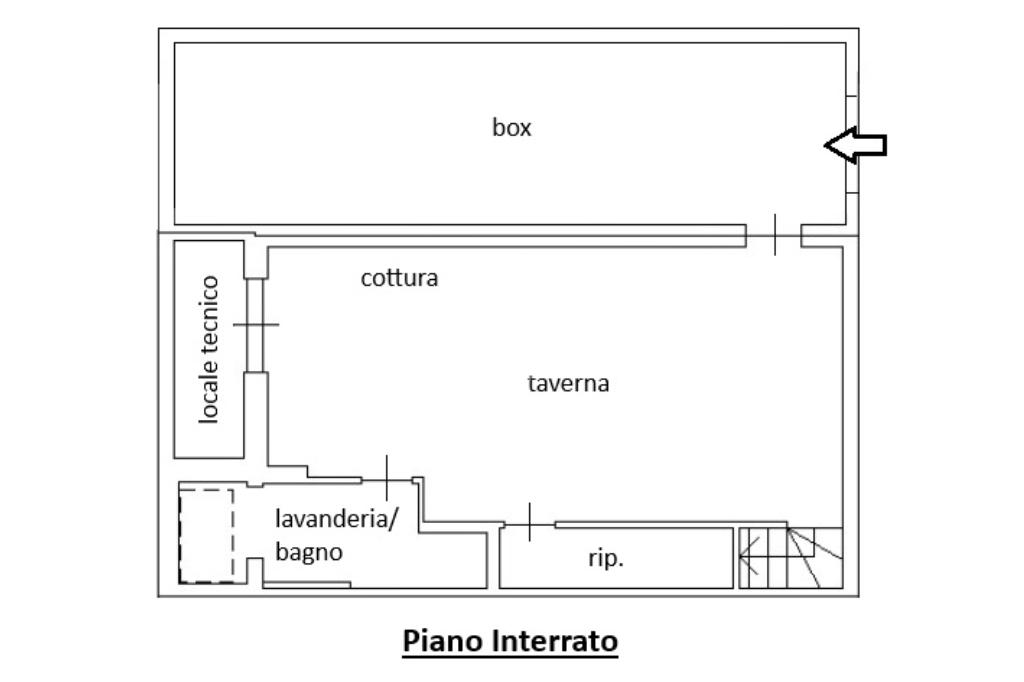Il piano interrato, di generosa metratura, ospita una grande taverna con zona cottura, perfetta per convivialità e tempo libero, oltre a un bagno con doccia e lavanderia, un vano tecnico e un pratico ripostiglio ricavato nel sottoscala. Dalla taverna si accede anche al box doppio in lunghezza, dotato di apertura sezionale motorizzata.