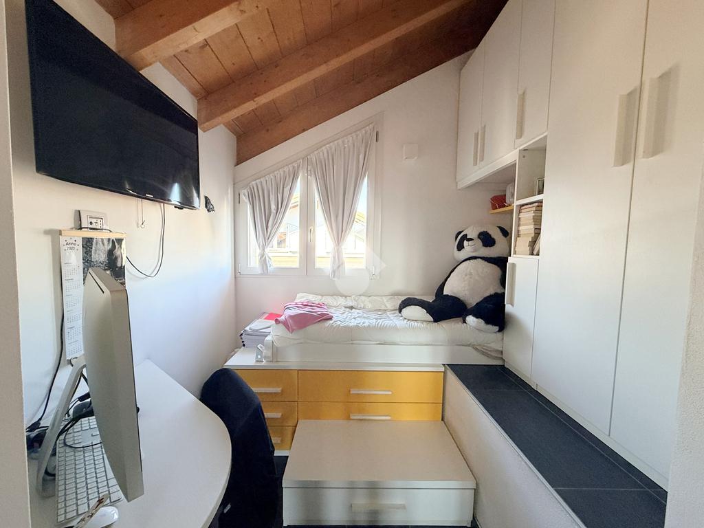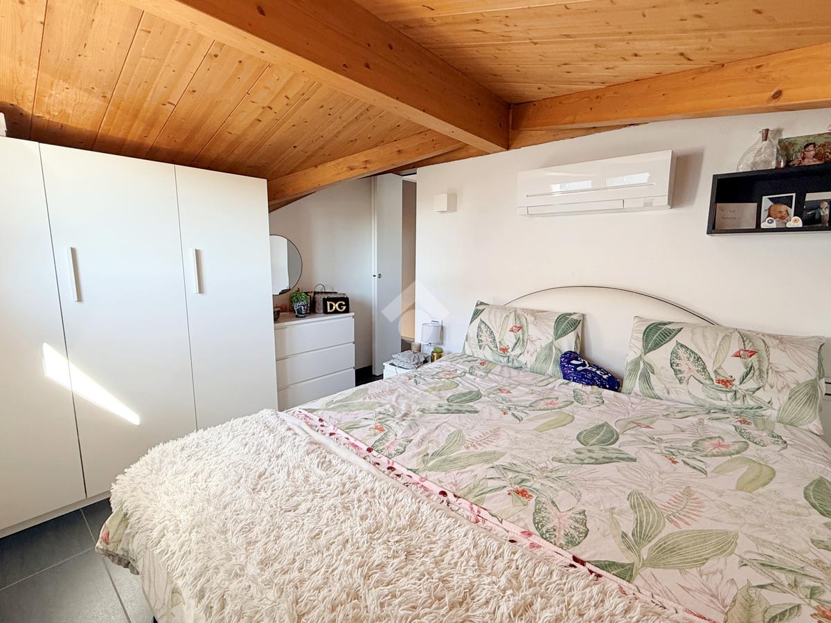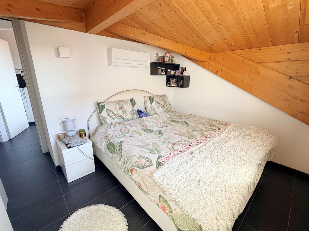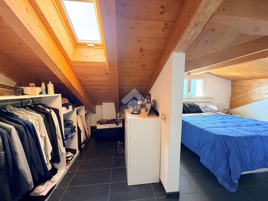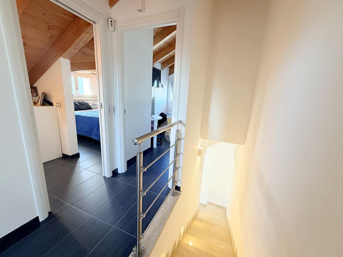 Salendo al primo piano si sviluppa una mansarda agibile, con travi in legno lamellare a vista, organizzata in quattro camere e una cabina armadio con predisposizione per un ulteriore bagno, offrendo così ampi spazi per tutta la famiglia o per chi necessita di ambienti multifunzionali.