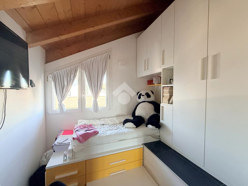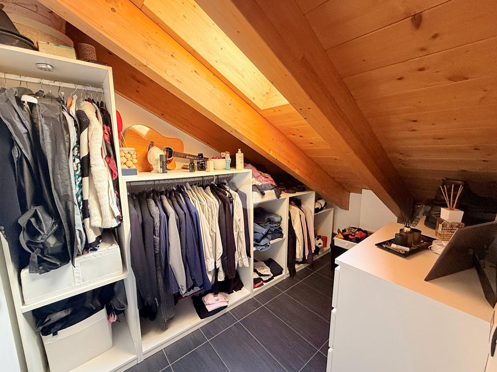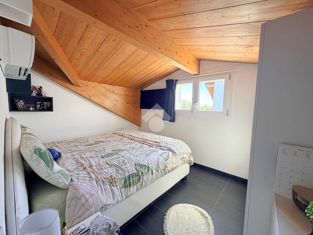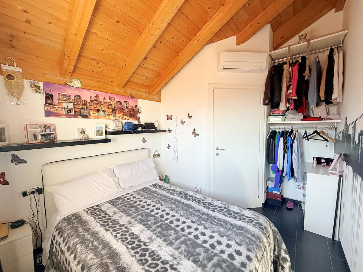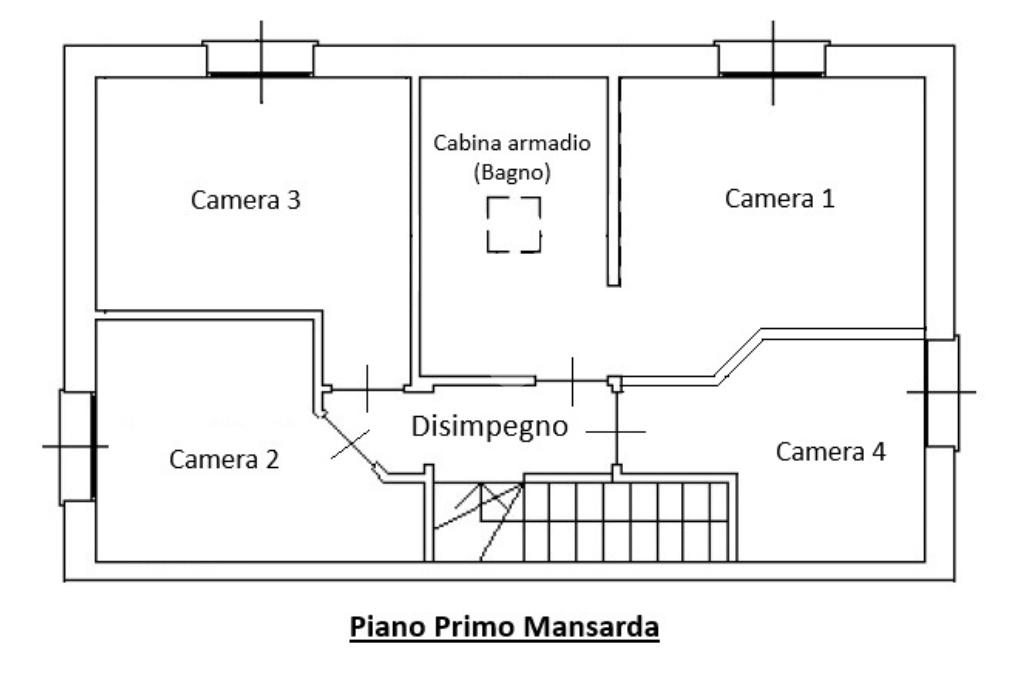 Salendo al primo piano si sviluppa una mansarda agibile, con travi in legno lamellare a vista, organizzata in quattro camere e una cabina armadio con predisposizione per un ulteriore bagno, offrendo così ampi spazi per tutta la famiglia o per chi necessita di ambienti multifunzionali.