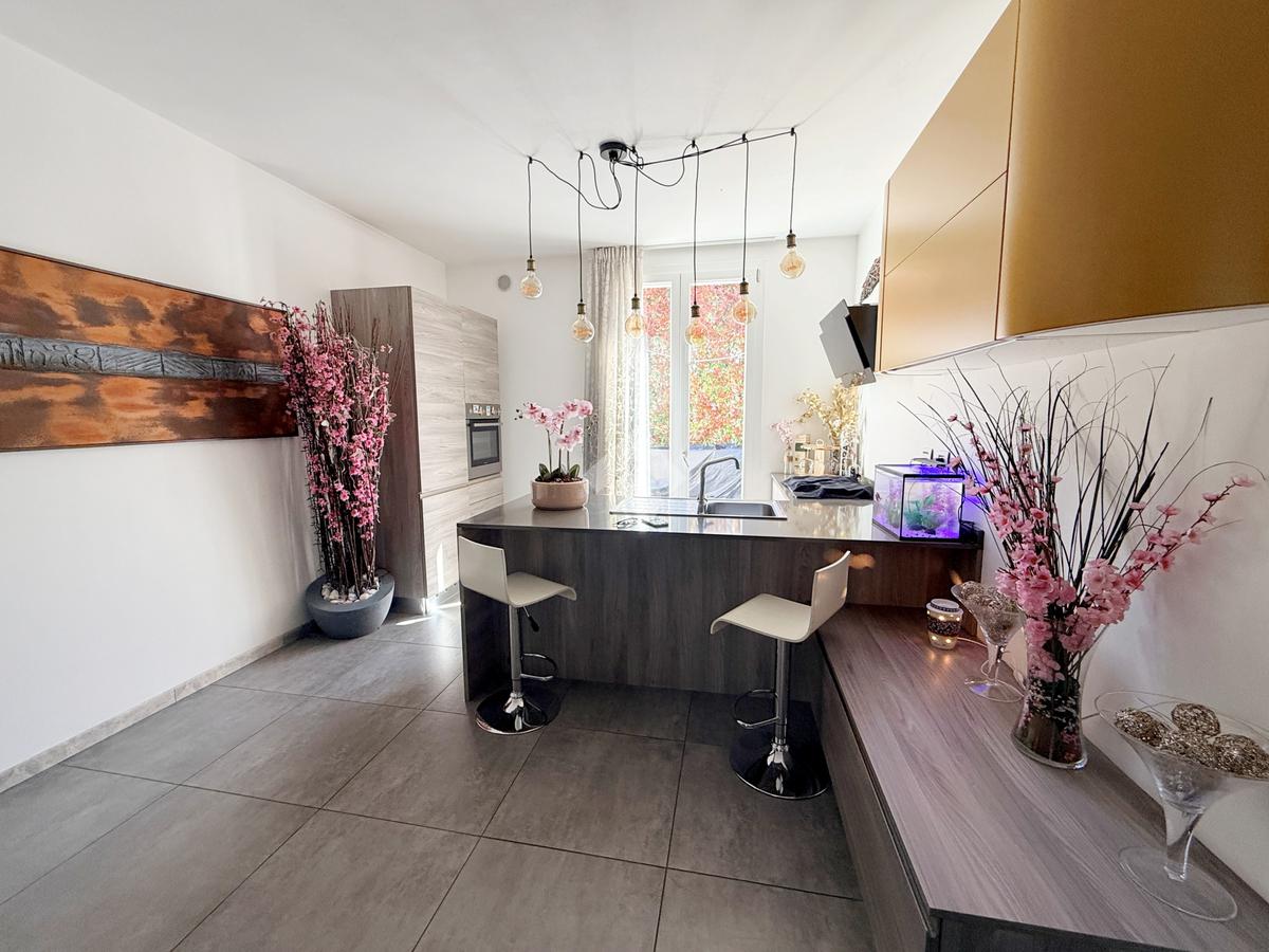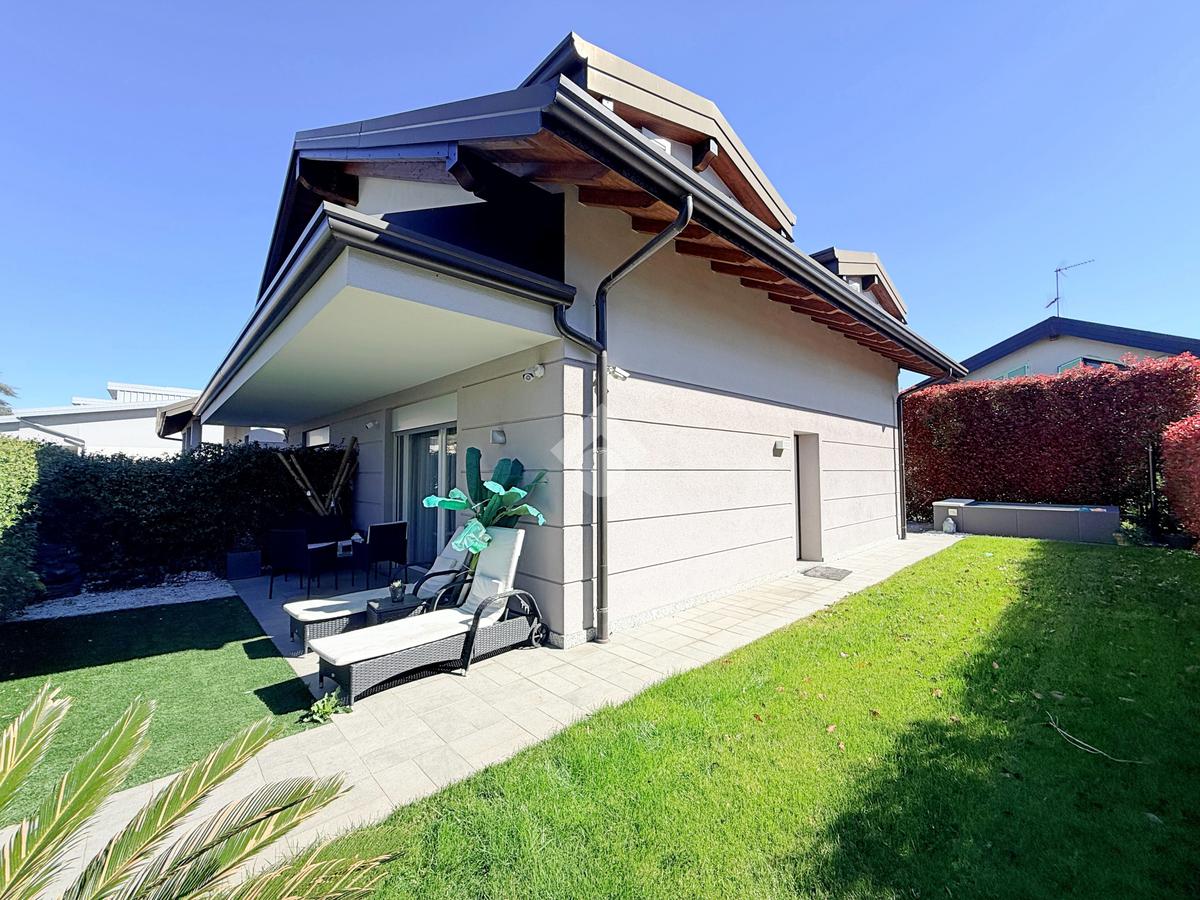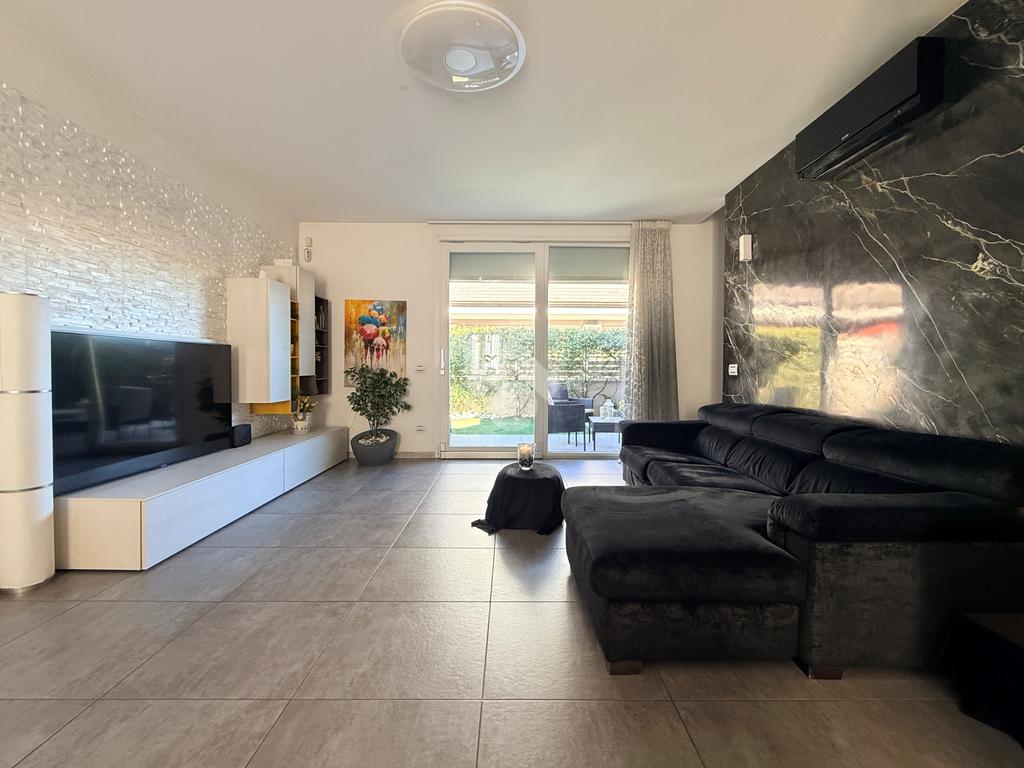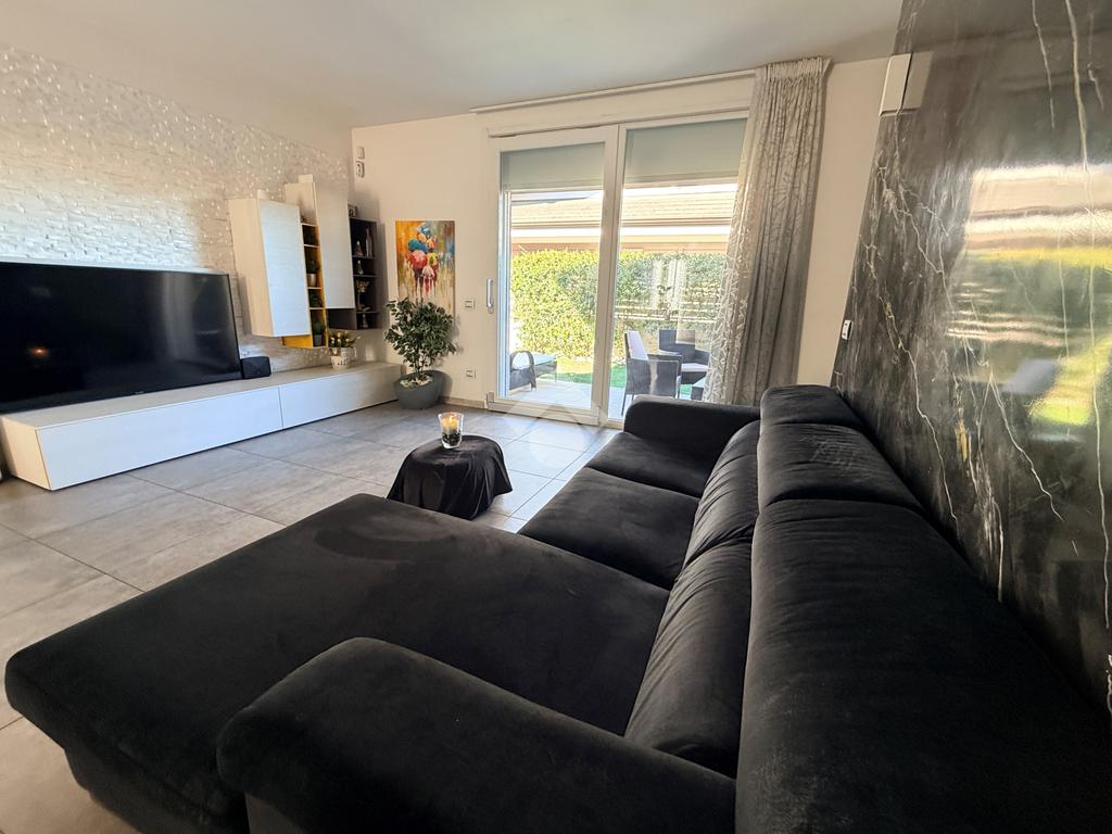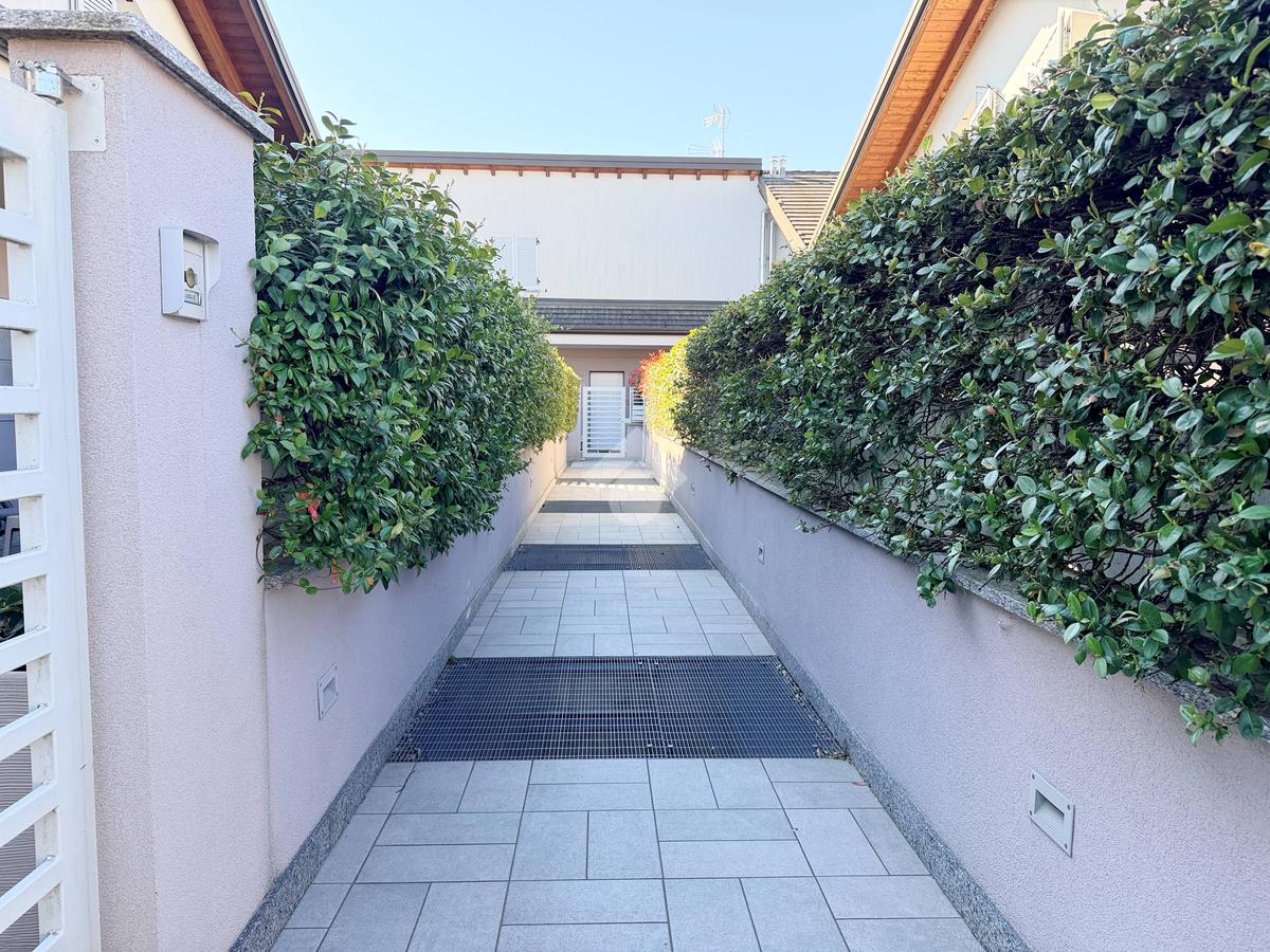 L’ingresso pedonale privato introduce a un’abitazione curata in ogni dettaglio, circondata da un piacevole giardino che si sviluppa su tre lati per circa 150 mq, perfetto per vivere momenti di relax all’aperto.