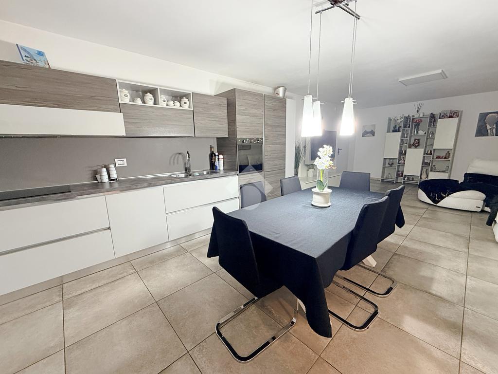 Al piano terra si viene accolti da un luminoso salone, affiancato da una cucina abitabile a vista, facilmente separabile per chi desidera ambienti più distinti. Completa il livello un bagno finestrato dotato di vasca idromassaggio e un portico di circa 10 mq, ideale per pranzi e cene all’esterno durante la bella stagione.